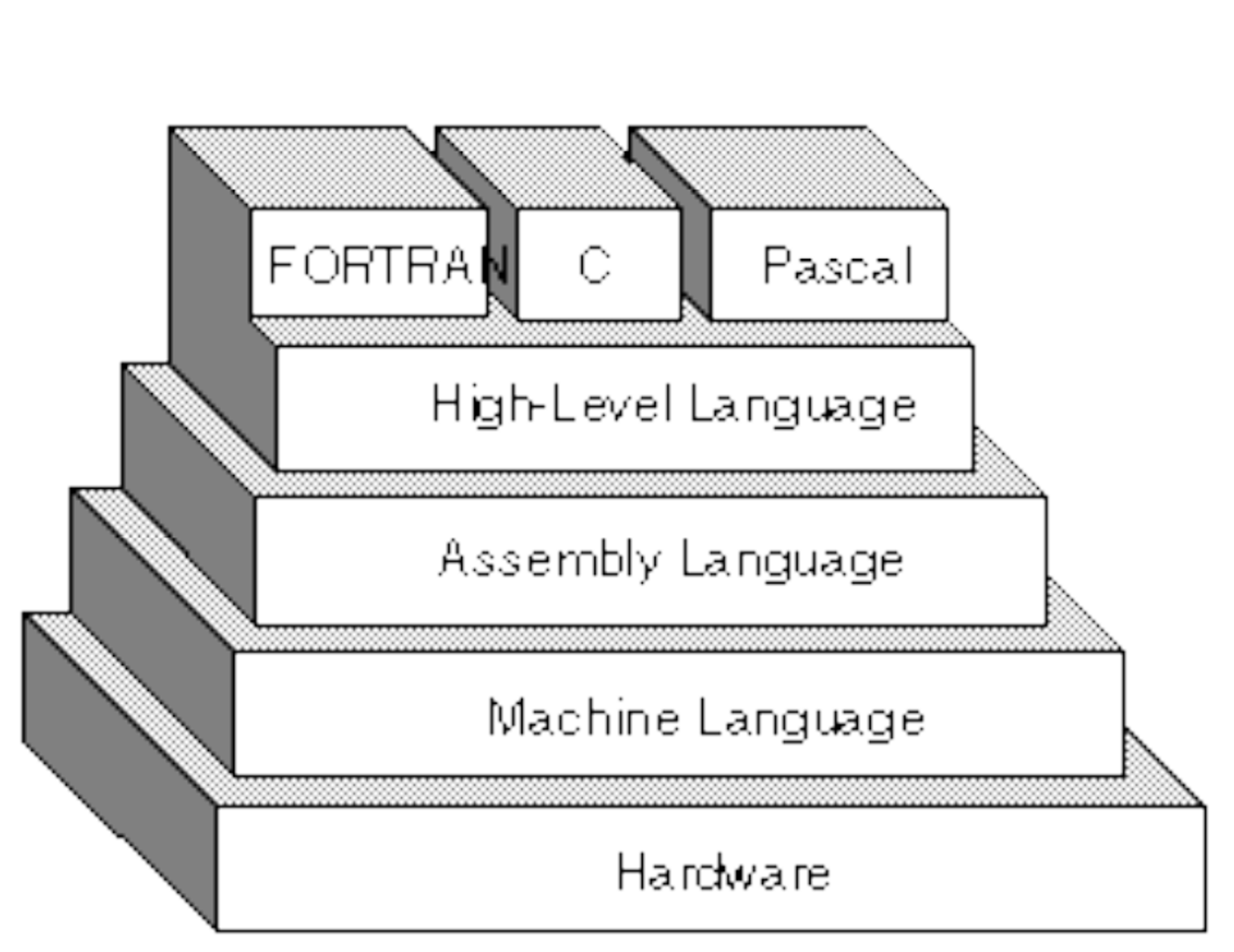 - 소프트웨어는 기본적으로 자연어 알파벳을 사용하여 기계어를 모호하게 연상시키는 저수준 어셈블리 언어로 작성 가능