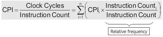 • 서로 다른 명령어들이 다른 CPI 값을 가지기 때문에, 어떤 명령어들이 더 자주 사용되느냐에 따라 전체적인 평균 CPI는 달라질 수 있다.