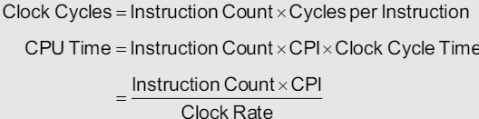 - 프로그램의 명령어 수(Instruction Count)와 명령어당 평균 사이클 수(CPI, Cycles Per Instruction)는 프로그램의 성능을 평가하는 데 중요한 요소.