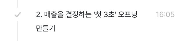 이번 수업에서 인상 깊었던 건 ‘첫 3초’를 만드는 과정이 감각이나 센스로 끝나는 게 아니라는 점이다. 논리, 타겟 분석, 구매 맥락, 심리 구조까지 전부 포함돼야 한다. 다시 말해, 오프닝은 예쁘게 보이는 문장이 아니라, 지갑을 열게 만드는 이유를 가장 먼저 던져주는 문장이라는 것.그래서 강의에서는 오프닝을 만들 때 다음 3가지 질문을 스스로 반드시 체크하라고 했다.지금 당장 왜 이 제품을 봐야 하지?이게 나와 무슨 상관이지?왜 지금 사야 하지?이 질문들이 의외로 강력했다. 그대로 가져와서 내가 하려는 상품에 대입해보니, 그동안 내 오프닝 문장은 “설명”뿐이었고, “구매를 유도하는 이유”는 없었다.