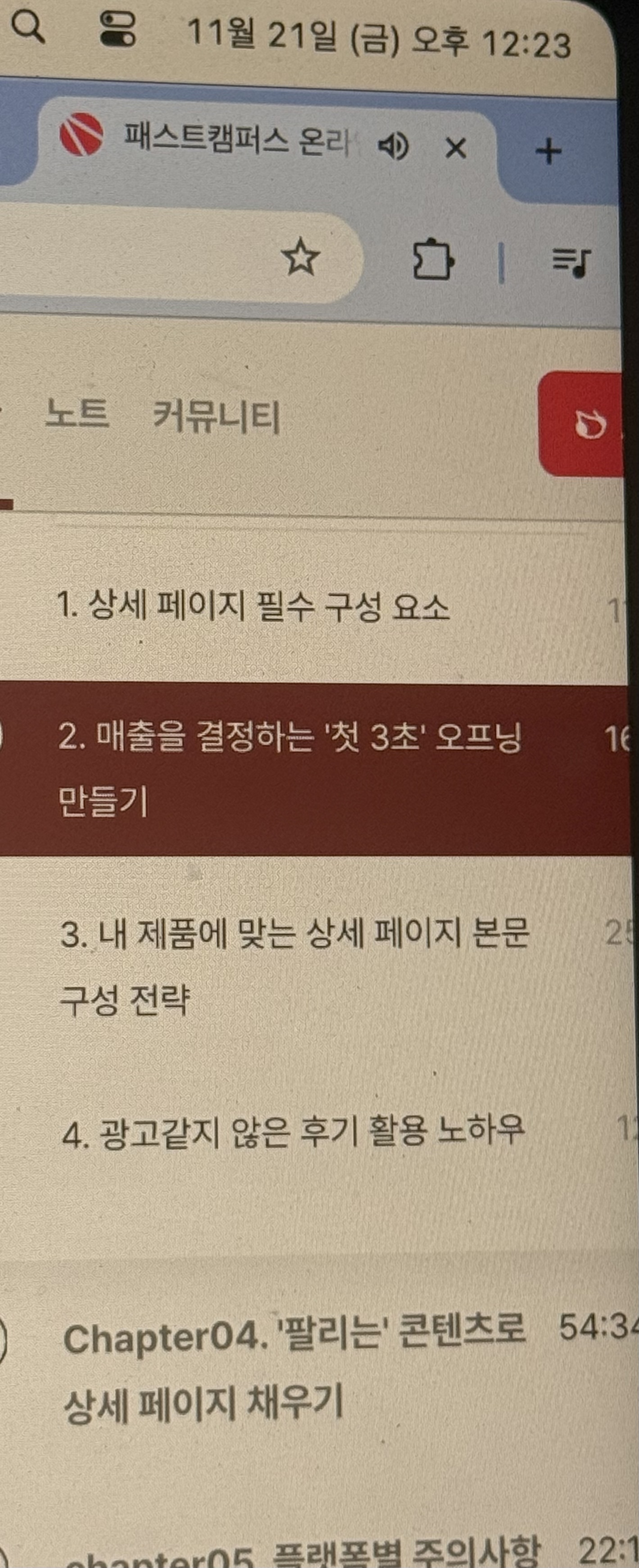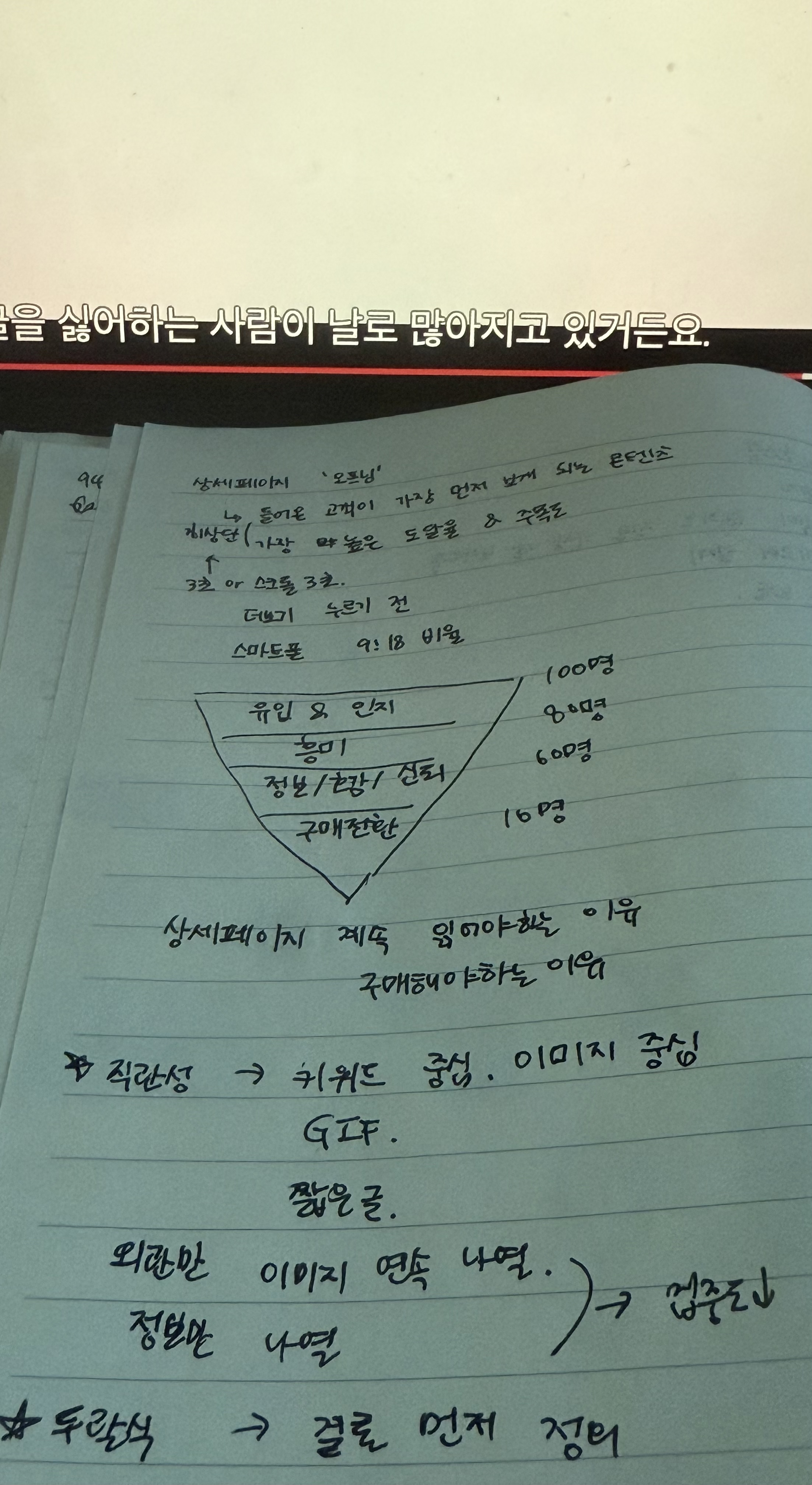 오늘 강의는 지금까지 들었던 어떤 마케팅 수업보다 더 실전적이었다.특히 “첫 3초”라는 말이 여러 번 강조됐는데, 단순한 멘트가 아니라 실제로 매출의 흐름을 바꾸는 결정적 요소라는 걸 다시 한 번 깨닫는 시간이었다. 우리는 흔히 상세페이지 전체를 정교하게 만드는 데만 집중하는데, 소비자는 그 긴 내용을 읽을지 말지조차 첫 3초 안에 결정한다는 사실이 꽤 충격적이었다.