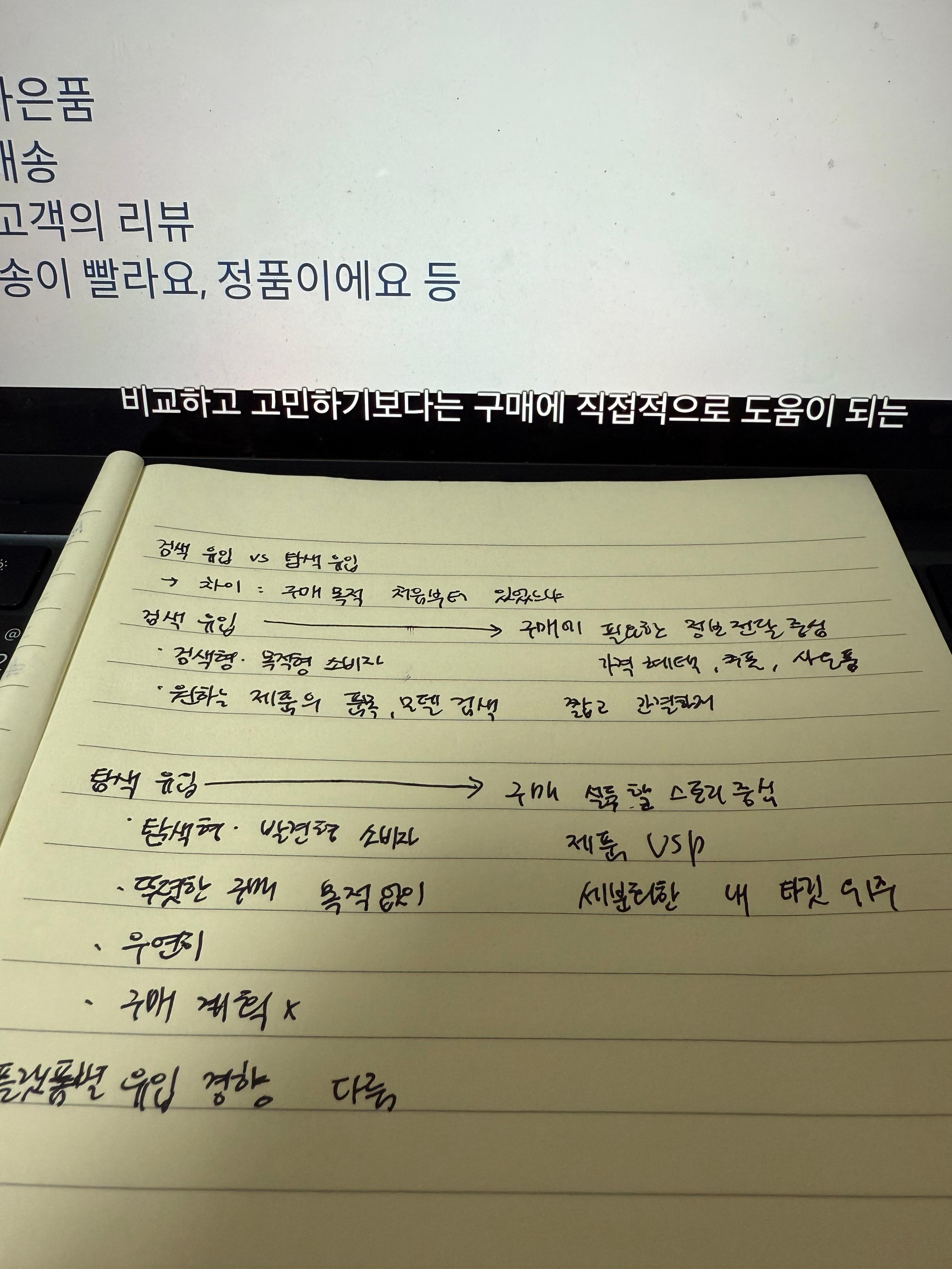 이번 강의를 들으면서 가장 강하게 느낀 점은 “유입 구조를 모르면 광고 예산을 아무리 써도 매출 구조가 안 열린다”는 사실이었다.특히 플랫폼별로 소비자가 들어오는 방식이 완전히 다르다는 걸, 사업 전략의 핵심으로 이해하게 됐다.