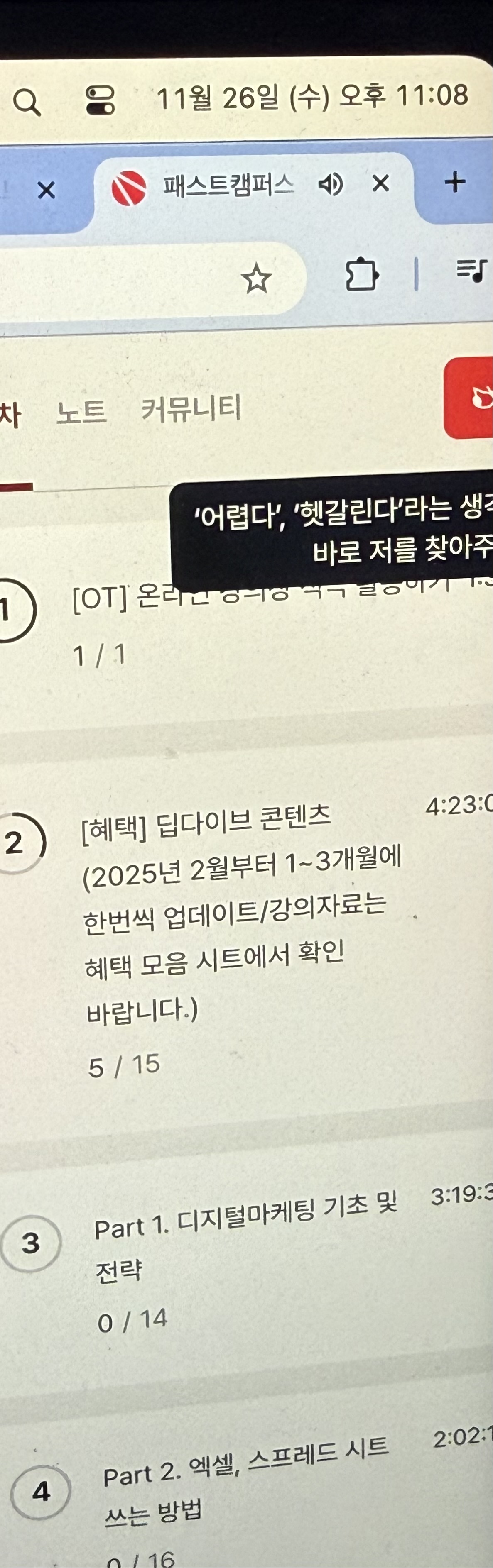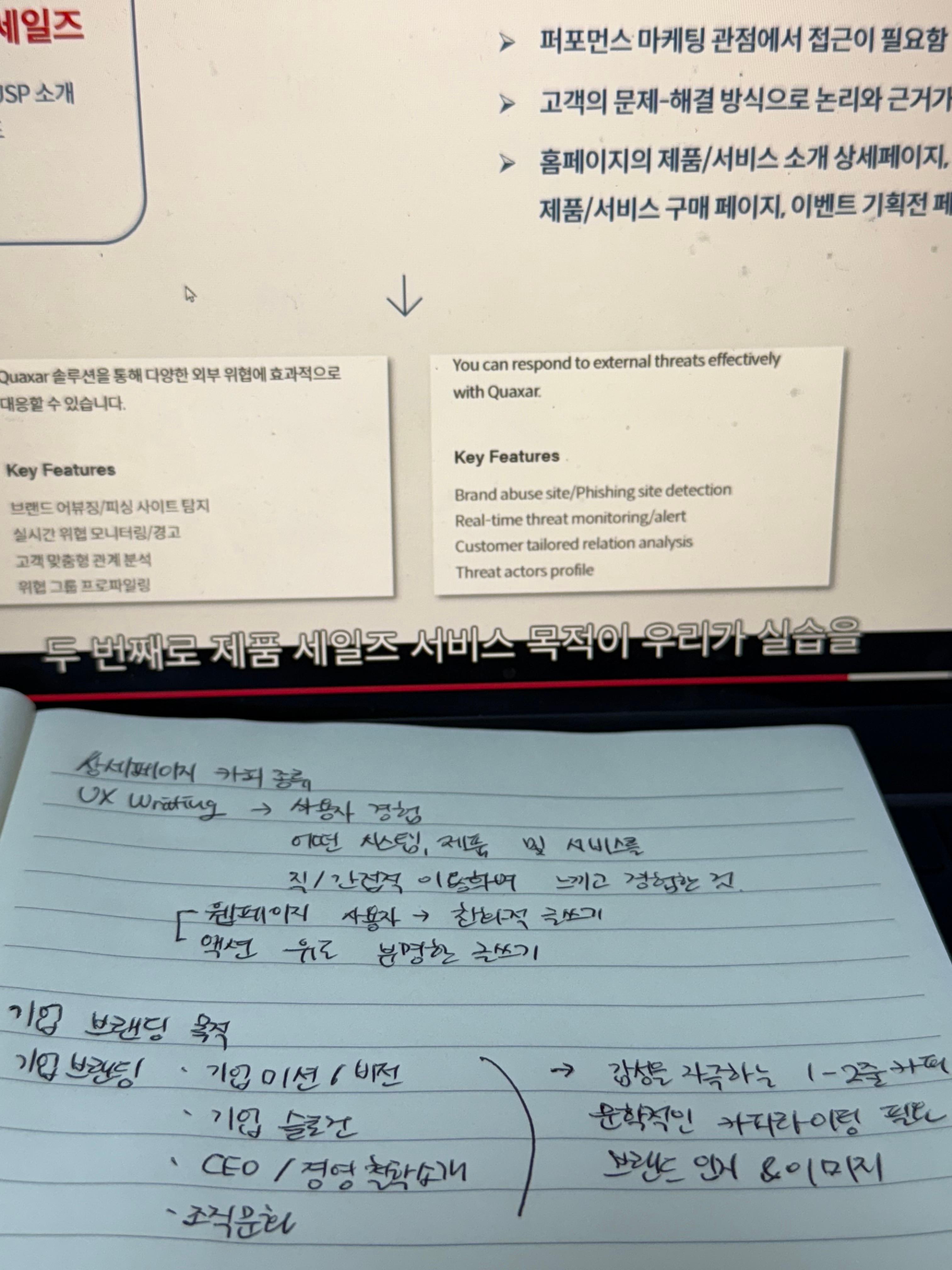 마케팅의 본질, 우리가 누구에게, 무엇을, 왜 전달하는가에 대한 근본적인 질문을 던지게 해준 귀중한 시간이었다. 특히 '기업 브랜딩 목적'과 'UX Writing'에 대한 심도 있는 접근은 기존의 단편적인 마케팅 지식을 하나의 유기적인 시스템으로 연결해주는 핵심 고리 역할을 했다.