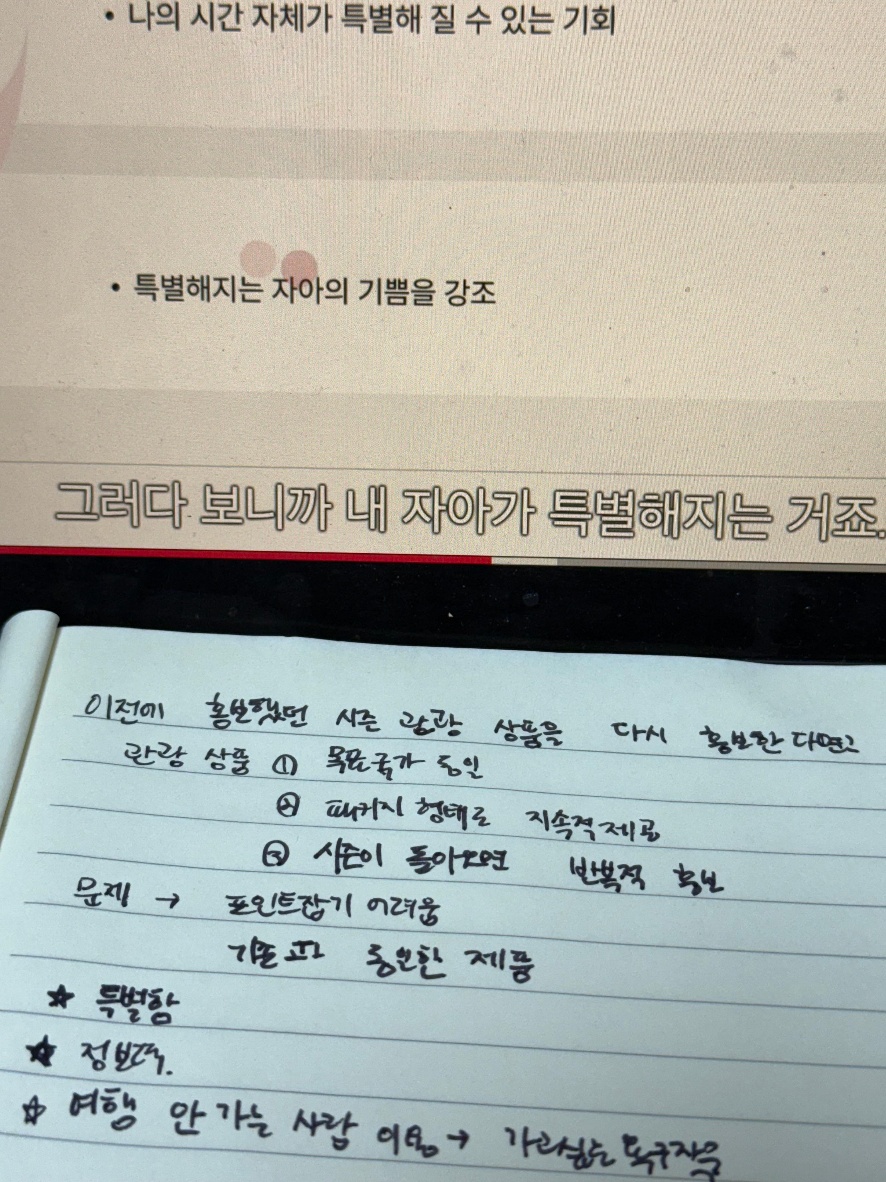 이번 디지털마케팅 학습에서 가장 인상 깊었던 내용은 이전에 홍보했던 시즌 관광 상품을 다시 활용하는 방법에 대한 접근이었다. 보통 시즌이 지나간 관광 상품은 더 이상 가치가 없다고 생각하기 쉬운데, 오히려 이 지점이 새로운 마케팅 기회가 될 수 있다. 관광 상품은 한 번 소비되고 끝나는 단발성 상품이 아니라, 시즌마다 반복적으로 활용 가능한 패키지 형태의 콘텐츠라는 점을 다시 인식하게 되었다.특히 관광 상품의 핵심 문제로 제시된 ‘기존과 동일한 상품 구조’와 ‘포인트를 잡기 어려움’이라는 부분이 공감됐다. 같은 장소, 같은 코스, 같은 구성으로 다시 홍보할 경우 소비자에게는 새로울 것이 없기 때문에 단순한 할인이나 가격 경쟁으로 흐르기 쉽다. 이 강의에서는 이러한 한계를 극복하기 위해 상품 자체를 바꾸기보다는, 메시지의 방향과 타겟을 바꾸는 전략을 제시했다는 점이 인상 깊었다.가장 흥미로웠던 포인트는 ‘여행을 가지 않는 사람’을 마케팅의 주요 타겟으로 설정하는 방식이었다. 이미 여행을 자주 다니는 사람보다, 바쁘거나 여러 이유로 여행을 가지 못하는 사람들의 욕구를 자극하는 것이 훨씬 효과적일 수 있다는 설명이 설득력 있게 다가왔다. 이들에게는 여행 자체보다 ‘나만 알고 싶은 여행지’, ‘내 시간이 특별해지는 경험’, ‘정보만으로도 충분히 떠난 기분을 느낄 수 있음’ 같은 감정적 요소가 중요하다는 점을 배웠다.또한 관광지 정보 자체를 적극적으로 발산하는 전략도 인상 깊었다. 단순히 패키지를 판매하는 데 그치지 않고, 여행지에 대한 충분한 정보 콘텐츠를 제공함으로써 “이 정도 정보면 여행이 가능하겠다”는 신뢰를 먼저 쌓는 방식이었다. 이는 블로그, SNS, 유튜브 등 다양한 채널에서 검색 수요를 흡수하고, 자연스럽게 패키지 구매로 이어지게 만드는 구조라는 점에서 실무적으로도 활용도가 높다고 느꼈다.이번 학습을 통해 디지털마케팅은 단순히 상품을 많이 노출시키는 것이 아니라, 타겟의 상태와 감정을 정확히 이해하고 욕구를 자극하는 설계가 중요하다는 것을 다시 한 번 깨닫게 되었다. 이전 시즌의 관광 상품도 관점을 바꾸면 충분히 다시 살아날 수 있다는 점에서, 앞으로 콘텐츠 기획과 마케팅 전략을 세울 때 큰 도움이 될 것 같다.