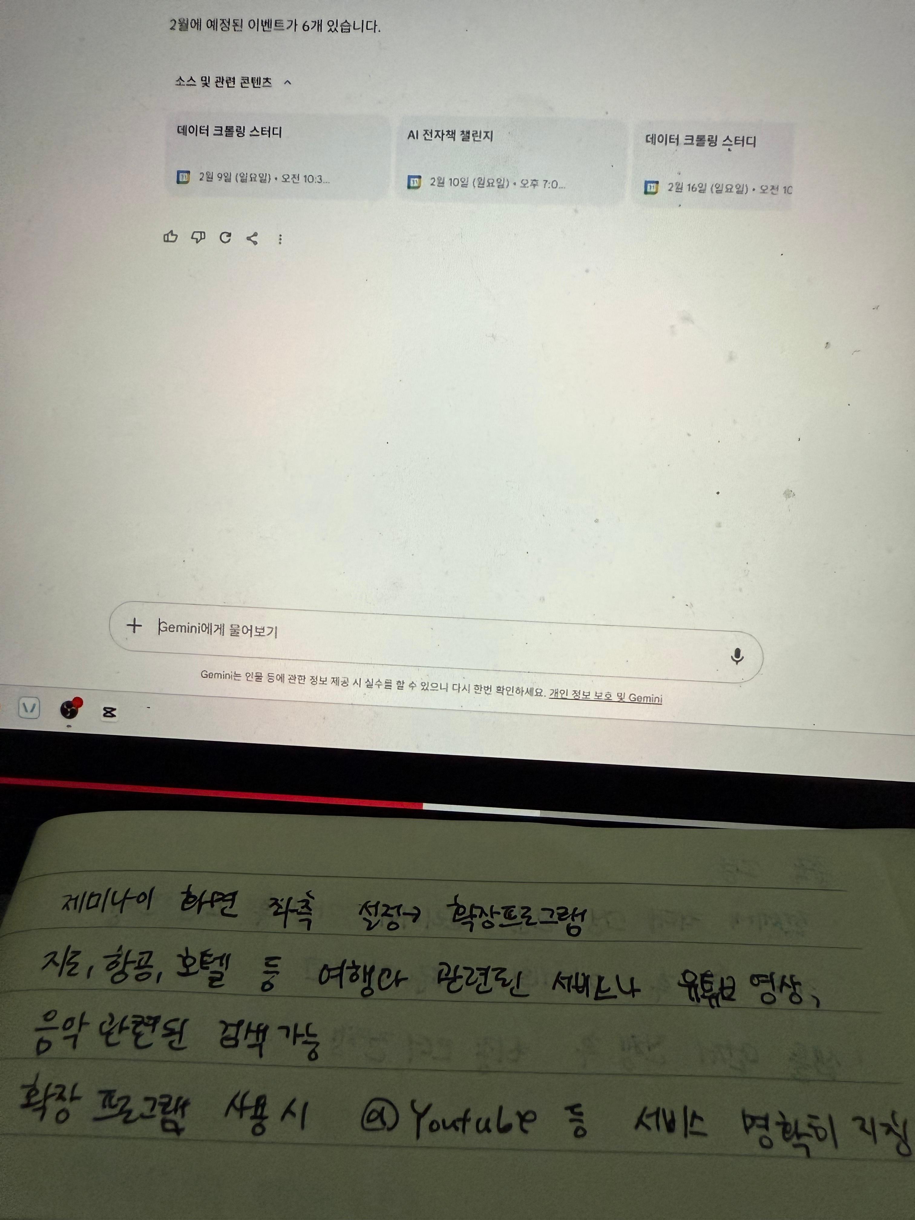 이번 디지털마케팅 학습에서 가장 인상 깊었던 부분은 Gemini를 단순한 검색 도구나 질문 응답 AI가 아니라, 실제 업무 흐름 안에 자연스럽게 녹여 사용할 수 있다는 점이었다. 특히 Workspace 환경과 연동되어 Gmail, Google Calendar, Docs 등 기존에 매일 사용하던 툴 안에서 바로 활용할 수 있다는 점은 마케팅 실무의 효율을 크게 바꿀 수 있겠다는 확신을 주었다.그동안 디지털마케팅 업무는 자료를 찾기 위해 브라우저를 오가고, 메일을 확인한 뒤 다시 문서로 정리하는 식으로 흐름이 자주 끊기곤 했다. 하지만 Gemini를 활용하면 메일 내용을 요약하고, 그 맥락을 유지한 채 바로 문서 작성이나 기획 정리로 이어질 수 있어 업무의 단절이 줄어든다. 이 과정에서 느낀 점은 ‘속도’보다 더 중요한 것은 ‘집중력 유지’라는 사실이었다. 생각이 가장 선명할 때 바로 실행으로 이어질 수 있다는 점이 큰 장점으로 다가왔다.또한 Docs에서 보고서를 작성할 때 Gemini를 활용해 초안을 만들고, 그 위에 나의 생각과 브랜드 관점을 덧붙이는 방식이 매우 효과적이라고 느꼈다. 완성된 문서를 대신 만들어주는 것이 아니라, 사고의 출발점을 제공해준다는 점에서 오히려 창의성을 해치지 않고 생산성을 높여준다는 인상을 받았다. 마케팅 문서 작성에서 가장 어려운 ‘첫 문장’의 부담을 줄여준다는 점은 실무자에게 큰 도움이 될 것 같다.Calendar와의 연동 역시 인상 깊었다. 마케팅 일정은 캠페인, 콘텐츠 발행, 광고 운영 등 여러 요소가 얽혀 있어 관리가 복잡한데, Gemini를 통해 일정 검색과 정리가 가능하다는 점은 단순 편의를 넘어 전략적인 일정 관리로 이어질 수 있을 것이라 느꼈다. 일정 관리가 정교해질수록 마케팅의 실행력 또한 높아진다는 점을 다시 한 번 체감했다.이번 학습을 통해 느낀 가장 큰 인사이트는 디지털마케팅에서 AI의 역할은 ‘대체’가 아니라 ‘확장’이라는 점이다. Gemini는 생각을 대신해주는 존재가 아니라, 생각의 속도를 높이고 정리의 부담을 덜어주는 파트너에 가깝다. 앞으로 마케팅 기획, 콘텐츠 제작, 커뮤니케이션 업무 전반에서 이러한 도구를 어떻게 활용하느냐가 개인의 경쟁력을 좌우하게 될 것이라는 생각이 들었다. 단순히 툴을 배운 것이 아니라, 디지털마케팅 업무를 바라보는 시각 자체가 한 단계 확장된 시간이었다.