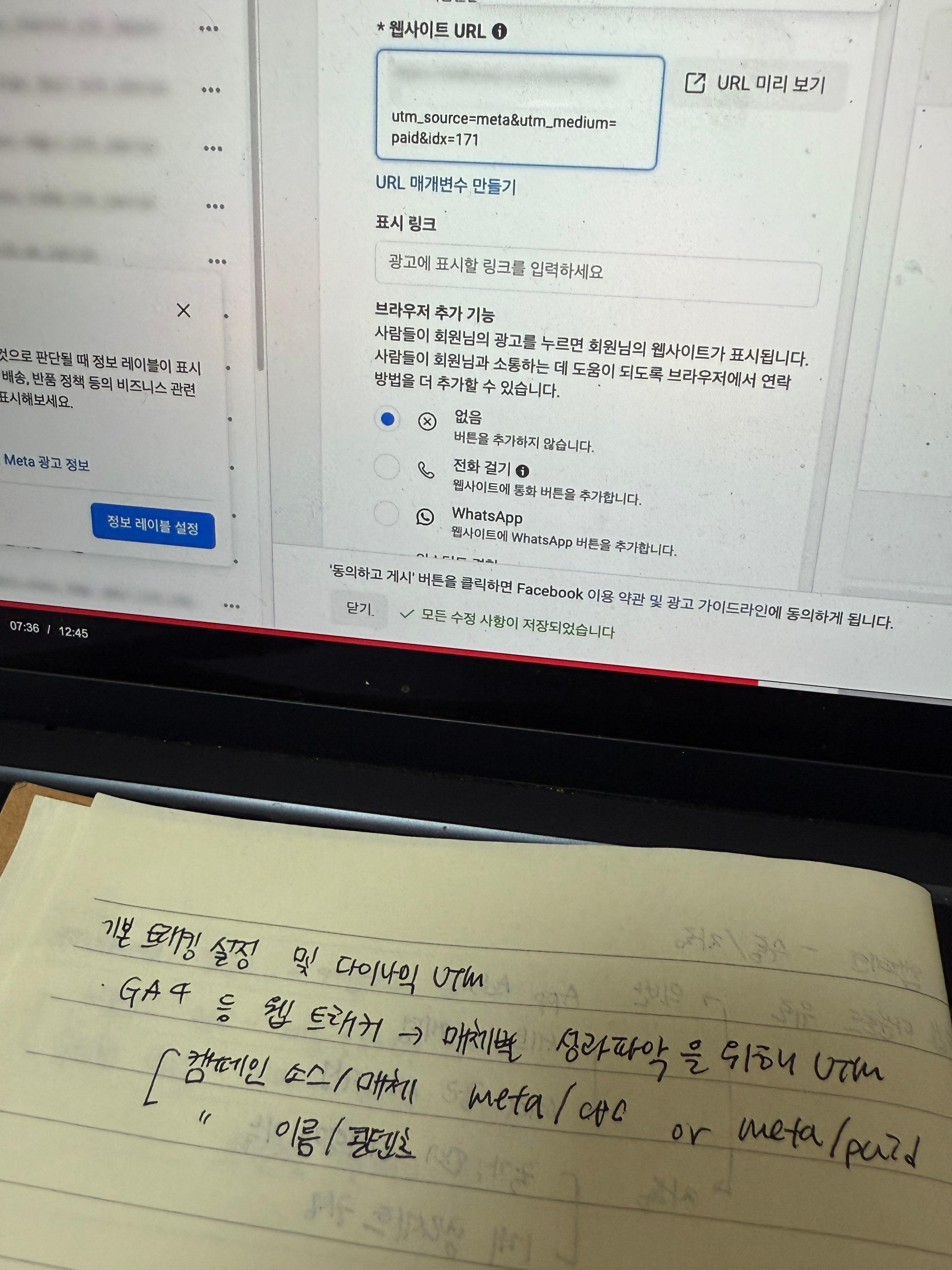 이번 학습을 통해 내가 그동안 디지털마케팅을 얼마나 ‘감’에 의존해 왔는지 솔직하게 돌아보게 되었다. 광고를 집행하고 나서 매출이 오르면 잘된 것 같고, 떨어지면 콘텐츠나 예산 탓을 하는 식이었다. 하지만 실제로 어떤 채널에서, 어떤 광고가, 어떤 이유로 성과를 냈는지를 정확히 설명하지 못했던 것이 가장 큰 문제였다는 생각이 들었다. UTM은 단순한 코드가 아니라, 마케팅에서 책임 있는 판단을 가능하게 하는 최소한의 장치라는 느낌을 받았다. 특히 인상 깊었던 점은 ‘트래킹을 한다’는 행위 자체가 마케팅 사고방식을 바꾼다는 점이었다. 이전에는 광고를 만들고 나면 결과를 기다리는 수동적인 입장이었다면, 이제는 시작 전부터 “이 결과를 어떻게 구분해서 볼 것인가”를 먼저 고민하게 되었다. 어떤 캠페인을 왜 분리해야 하는지, 이름을 왜 함부로 바꾸면 안 되는지에 대한 고민은 단순한 설정 문제가 아니라 사고의 문제라는 생각이 들었다.다이나믹 UTM 개념을 접하면서는 ‘확장성’에 대해 다시 생각하게 되었다. 초반에는 하나하나 직접 관리하는 것이 가능해 보이지만, 캠페인과 광고 세트가 늘어날수록 사람이 통제할 수 없는 지점이 반드시 온다. 이때 규칙을 만들어두지 않으면 데이터는 쌓이지만 해석할 수 없는 상태가 된다는 점이 현실적으로 와닿았다. 마케팅은 결국 반복과 확장인데, 그 기반이 되는 것이 바로 트래킹이라는 점을 스스로 납득하게 되었다.또 하나 느낀 점은, UTM은 성과를 좋게 만드는 도구가 아니라 성과를 ‘정직하게’ 보여주는 도구라는 사실이었다. 잘된 것처럼 보이던 광고가 실제로는 다른 채널의 영향일 수도 있고, 반대로 저평가되던 캠페인이 중요한 역할을 하고 있었을 수도 있다. 이 과정은 불편할 수 있지만, 장기적으로 보면 훨씬 효율적인 선택을 가능하게 해준다고 느꼈다.이번 학습을 통해 나는 이제 광고를 “돌려본다”는 표현 대신 “구조를 설계한다”는 표현이 더 맞다고 생각하게 되었다. UTM은 귀찮은 설정이 아니라, 나중에 후회하지 않기 위한 기록 장치다. 감으로 판단하던 마케팅에서 벗어나, 데이터로 스스로를 설득할 수 있는 마케터가 되기 위한 첫 단계라는 점에서 의미 있는 전환점이었다.