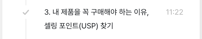 4. ‘USP는 발견하는 것이 아니라 만들어가는 것이다’ 강의 후반부에서 강사가 말한 문장이 가장 마음에 오래 남았다.“USP는 이미 완성된 문장을 찾는 게 아니다. 실험하고 개선하고 고객 반응을 보면서 완성해가는 문장이다.” 즉, USP는 정답이 아니라 ‘과정’이라는 것.그동안 USP를 완벽하게 정의하려고 애썼던 나에게는 큰 해방감이 되었으며, 동시에 앞으로 더 많이 실험하고 관찰해야겠다는 동기부여가 되었다.