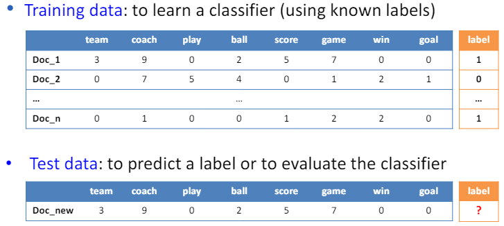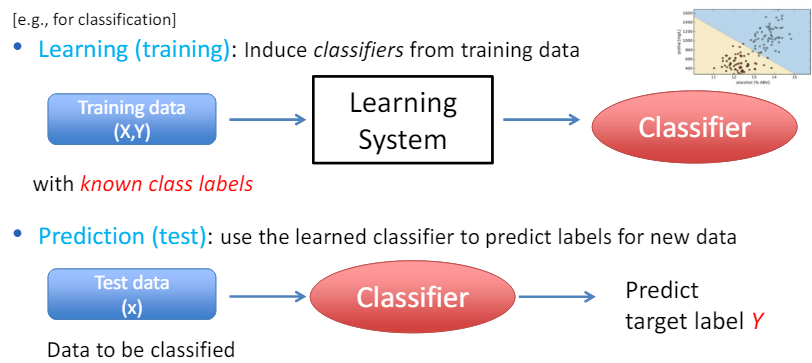 - 학습 데이터는 알려진 레이블을 사용하여 분류기를 학습시키는 데 사용.