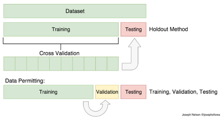 - 이와 같이 분할하지 않고 교차 검증(cross-validation)을 수행하는 경우도 있습니다.