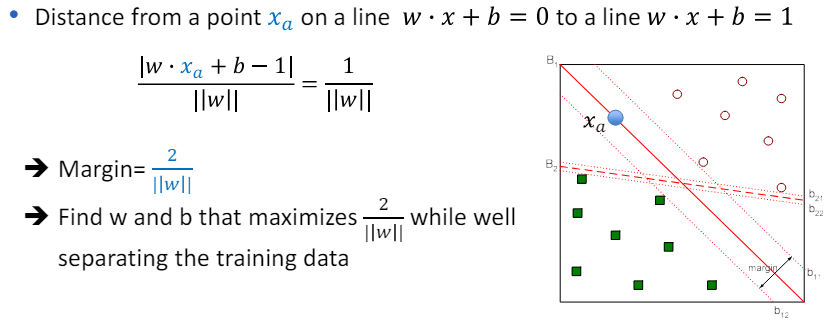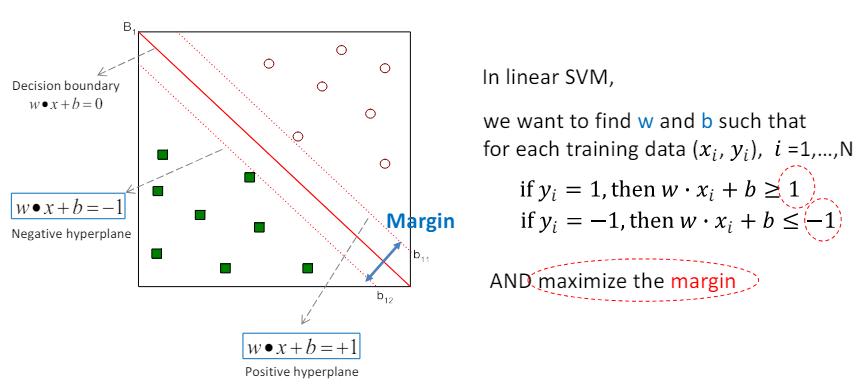 - 선형 SVM 요약: 훈련 단계 선형 SVM에서의 훈련 단계는 결정 경계(파라미터 w와 b)를 얻기 위해 제약이 있는 최적화 문제를 해결하는 과정을 포함합니다.