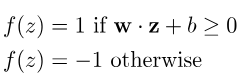- 이 함수의 결과가 양수인 경우 한 클래스로, 음수인 경우 다른 클래스로 분류됩니다.