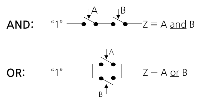 - 스위치들을 더 복잡한 구조(부울 함수)로 구성할 수 있다.