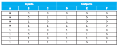 - 논리 회로의 모든 가능한 입력 조합과 그에 대응하는 출력을 표로 나타낸 것.