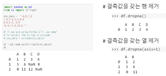 - 누락된 값이 있는 행은 dropna 메서드를 사용해 삭제.
