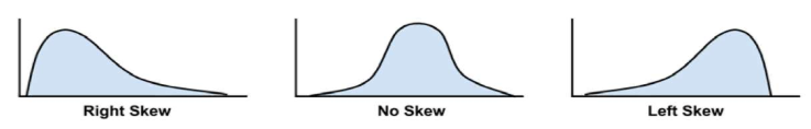 - 오른쪽으로 긴 꼬리를 가지면 우측 왜도(positive skew), 왼쪽으로 긴 꼬리를 가지면 좌측 왜도(negative skew)로 불림.