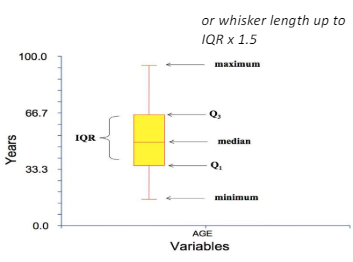 - 다섯 숫자 요약(최솟값, 제1사분위수(Q1), 중앙값(Q2), 제3사분위수(Q3), 최댓값)을 시각화하는 일반적인 방법.