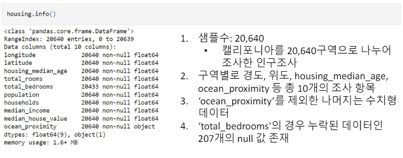 • pandas의 데이터프레임 활용 – head(), info(), describe(), hist() 등을 사용하여 데이터 구조 훑어보기