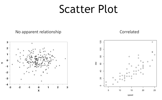 - 이 그래프는 데이터 포인트를 두 축에 걸쳐 표시함으로써 변수들 사이의 상관관계, 패턴, 이상치 등을 파악하는 데 유용.