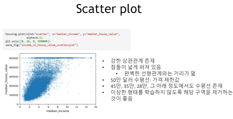 - 산점도를 통해 데이터 포인트들 사이의 관계를 직관적으로 파악할 수 있다.