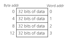 - 단어는 메모리에 정렬되어 있으며, 주소는 4의 배수여야 함.
