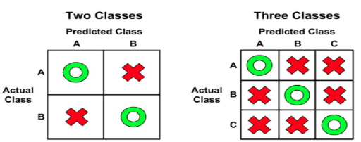 성능 측정에서 관심 있는 클래스를 '양성 클래스'라고 하며, 나머지 모든 클래스는 '음성'으로 분류됩니다. 이러한 분류에서 다음과 같은 용어들을 사용합니다: True Positive (TP, 진양성): 관심 클래스로 올바르게 분류된 경우입니다. False Negative (FN, 가음성): 관심 클래스가 아니라고 잘못 분류된 경우입니다. False Positive (FP, 가양성): 관심 클래스로 잘못 분류된 경우입니다. True Negative (TN, 진음성): 관심 클래스가 아닌 것으로 올바르게 분류된 경우입니다. 이러한 개념들은 분류 모델의 성능을 평가하고 이해하는 데 필수적입니다.