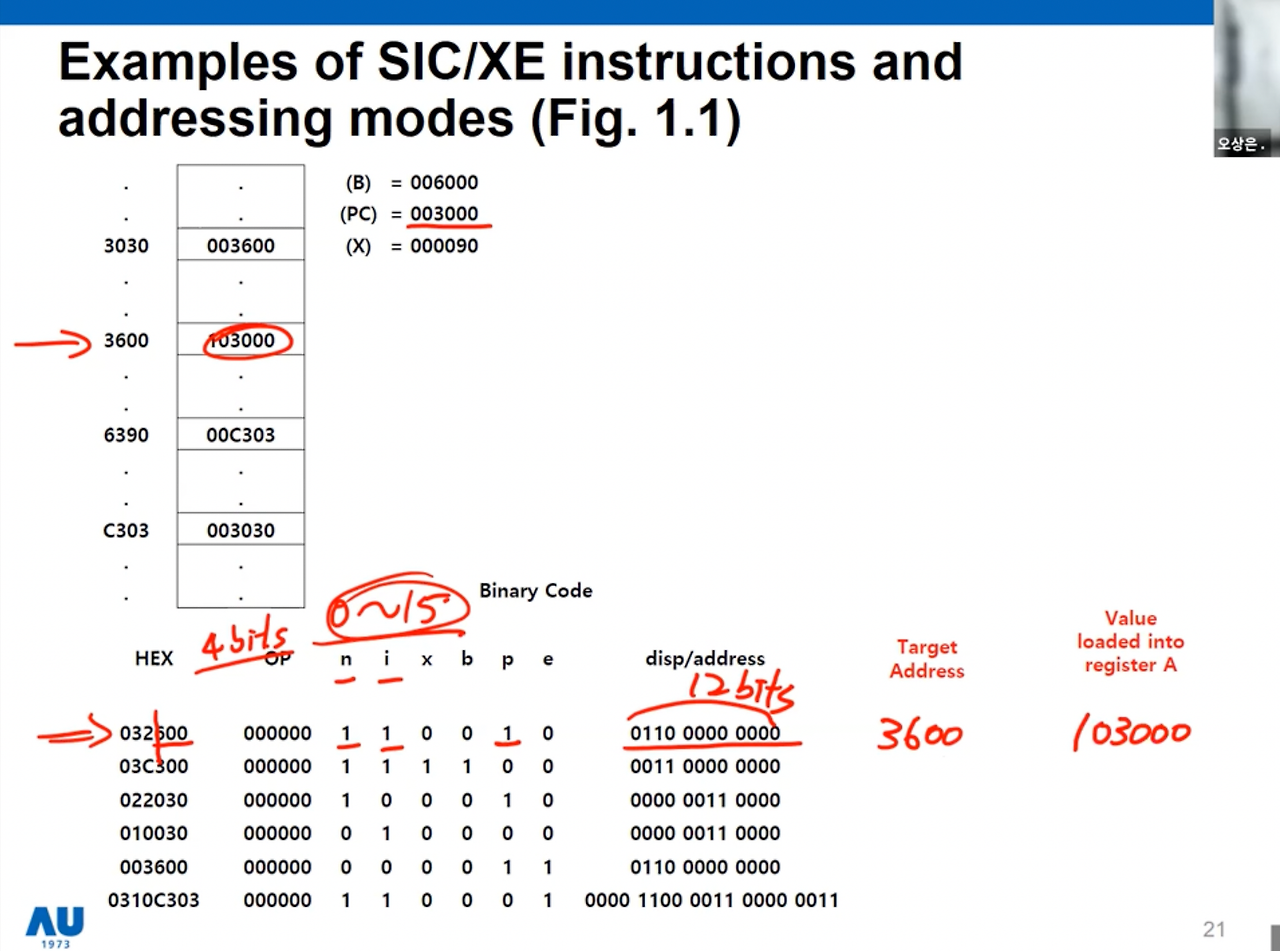- i=1, n=1: simple addressing 간단 주소 지정, SIC/XE 용